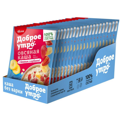 Каша Увелка овсяная б/п с бананом и клубникой 40гх20шт/уп