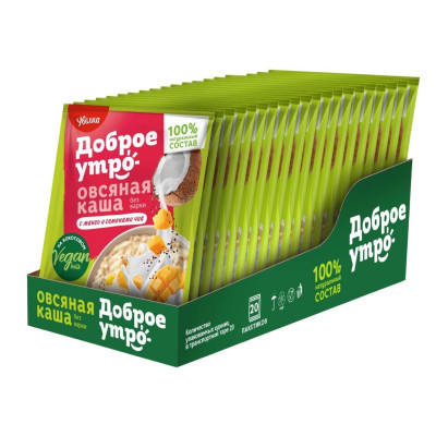 Каша Увелка овсяная на осн кокос напитка с манго и сем-ми чиа 40гх20шт/уп