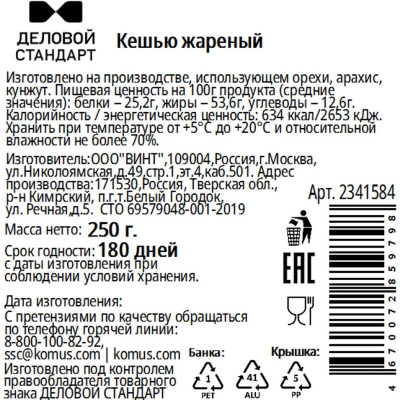 Кешью Деловой стандарт жареный, 50гх12шт/уп