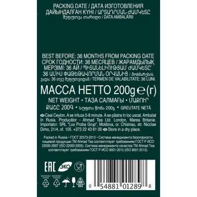 Чай Ahmad Ceylon Tea листовой черный Оранж Пеко, 200г 1289-012