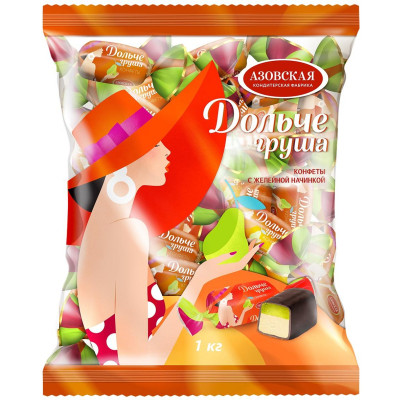 Конфеты помадные Азовская КФ Дольче груша глазир. с желейной нач., 1 кг