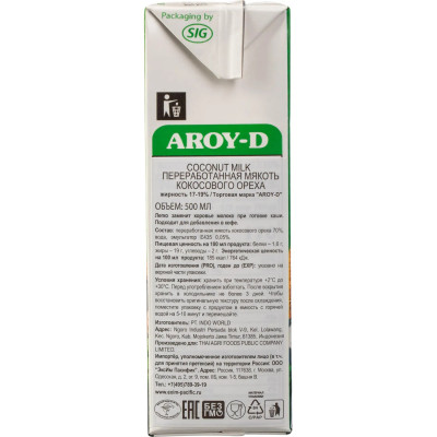 Напиток растительный Aroy-D молоко кокосовое, жирность 17-19%, 0,5 л