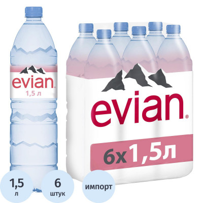 Вода минеральная Evian ПЭТ, негаз., 1,5 л