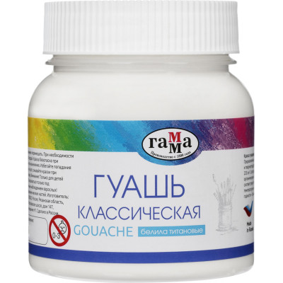 Гуашь Гамма Классическая 220 мл Белила Титановые, арт.221066221