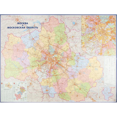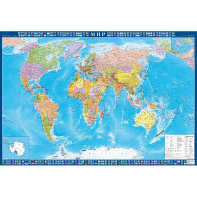 Карта настенная РФ политико-административная 1:4,4млн.,2,0x1,4м, в тубусе
