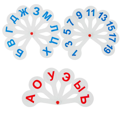 Веер-касса набор (3 веера) гласные-согласные буквы и цифры, ВК12