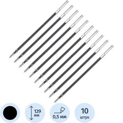 Стержень гелевый 129мм Attache черный 0,5мм, 10шт/уп