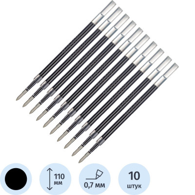 Стержень гелевый 110мм черн., 0,7 мм, 10шт/уп