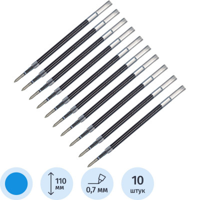 Стержень гелевый 110мм синий, 0,7 мм, 10шт/уп