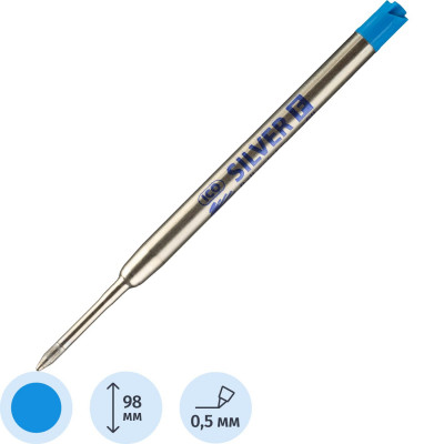Стержень шариковый 98мм ICO Silver синий 0,5 мм (тип Parker) Венгрия