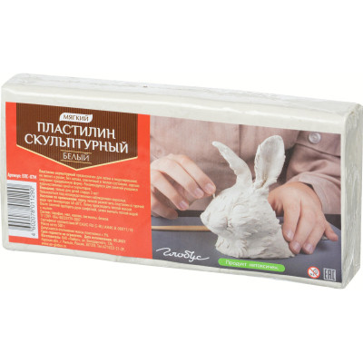 Пластилин скульптурный Глобус белый мягкий(500 грамм),ПЛС-07М