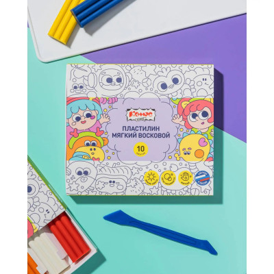 Пластилин мягкий восковой Комус Класс Миники, 10 цв/наб, 150 г, со стеком
