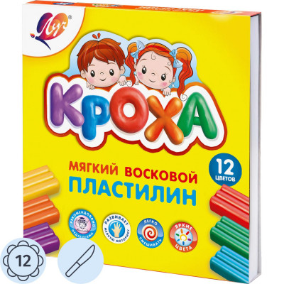 Пластилин восковой Луч Кроха 12 цв восковой 180гр со стеком