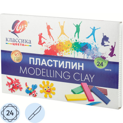 Пластилин классический Луч Классика 24 цв 480 гр., 28С 1642-08