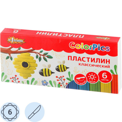 Пластилин классический №1 School ColorPics набор 6цв 120г со стеком