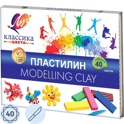 Пластилин классический Луч Классика 40 цв 800 г со стеком, 30С 1922-08