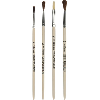 Набор кистей Комус Класс Максики пони,кр(№3,4),бел,кр(№2),щет,пл(№4),4шт