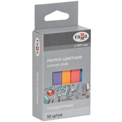 Мел школьный Гамма набор 10цв.,мягкий, квадратная форма, 0909194
