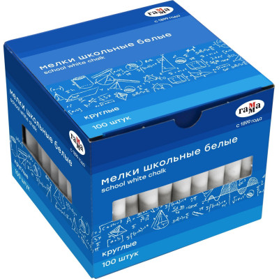 Мел школьный Гамма белые 100 штук, мягкие, круглые, 2308194