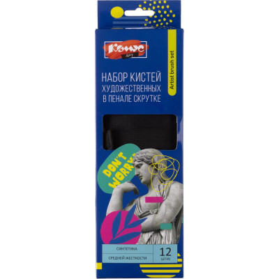Набор кистей худож Комус Арт,синт.сред.жестк,корот.ручк,черн.пенал,12шт/наб
