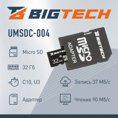 Карта памяти BigTech UMSDC-004, MicroSD, 32Gb