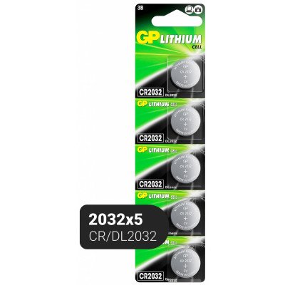 Батарейка GP CR2032, 3V, литий, бл/5шт, CR2032-2C5