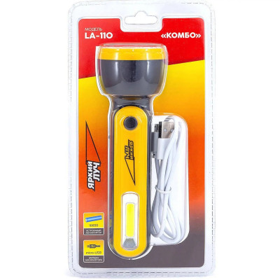 Фонарь ручной ЯРКИЙ ЛУЧ LA-110 Комбо +COB акк. встр.ЗУ