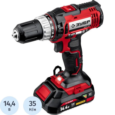 Дрель-шуруповерт аккумуляторная Li-ion ЗУБР ДШЛ-145-21, 14.4 В, 1 АКБ