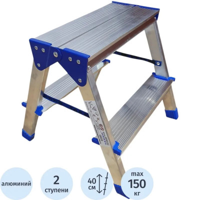 Стремянка двухсторонняя алюминиевая 2 ступени TARKO 04202e