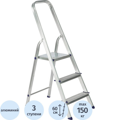 Стремянка алюминиевая 3 ступени TOPFORT