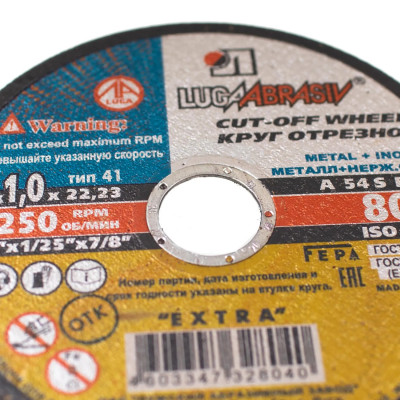 Диск отрезной по мет/нерж.ст. ЛУГА d125х1х22.2мм, А54 ,EXTRA,25шт/уп.(4394)