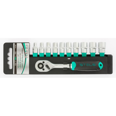 Набор головок торцевых с трещотк. Stels 11 предм 1/4 (4-13 мм) CrV (14125)