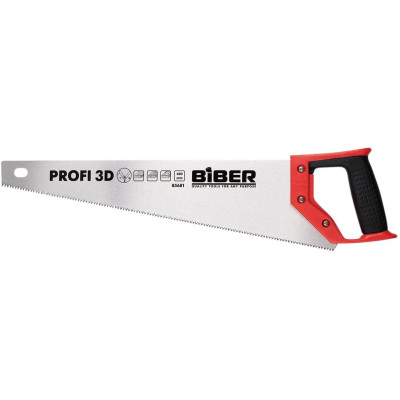 Ножовка по дереву БИБЕР 85682 ПРОФИ 3D заточка средний зуб, 450мм