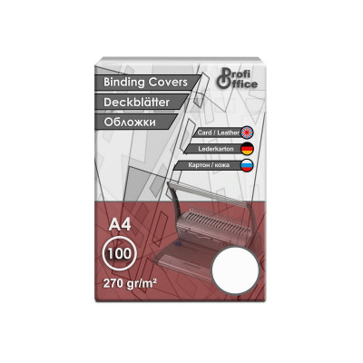 Обложки для переплета картонные ProfiOffice белые кожаА4,270г/м2,100шт/уп.
