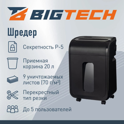 Шредер (уничтожитель) BIGTECH OS1501-9M P-5ур.секр.,9лист.20л