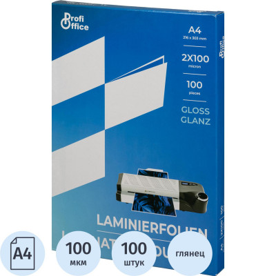 Пленка для ламинирования ProfiOffice А4, 100мкм 100шт/уп.
