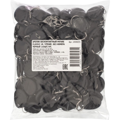 Брелок бесконтактный Mifare Classic 1K, чтение,без номера черный (100шт/уп)