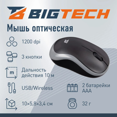 Мышь компьютерная Bigtech BM-M280BG черный/серый
