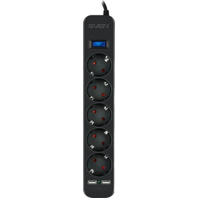 Сетевой фильтр SVEN SF-05LU 5.0 м (5м/5р,2xUSB(2.4А)) черный(SV-018856)