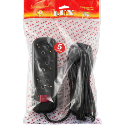 Удлинитель LUX У3-ЕВК-05 3 входа 5м с зазем. выключат., 250В, 16А