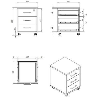 Тумба подкатная ТМ-3А Орех Французский 412х450х551 IMAGO